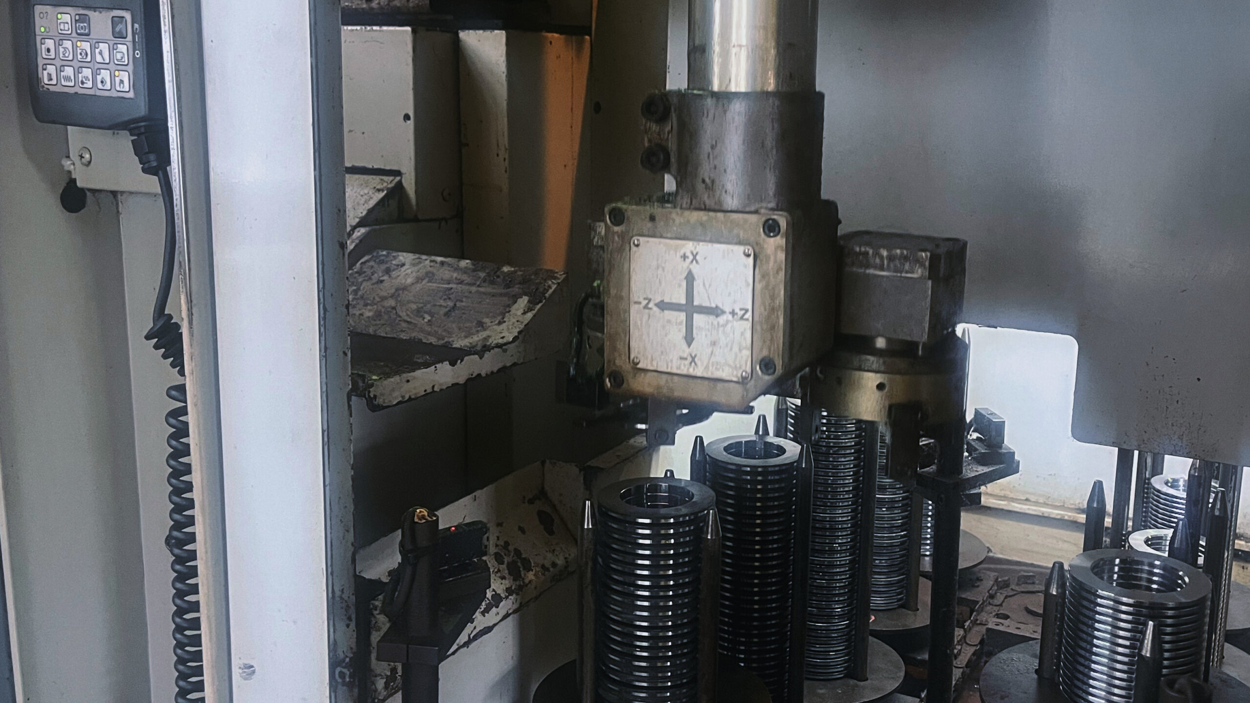研磨前加工を中心としてブッシュやカラーなどをローダー付き旋盤で生産し、穴あけがあるものはマシニングセンタで加工を行い、研磨の工程につないでおります。